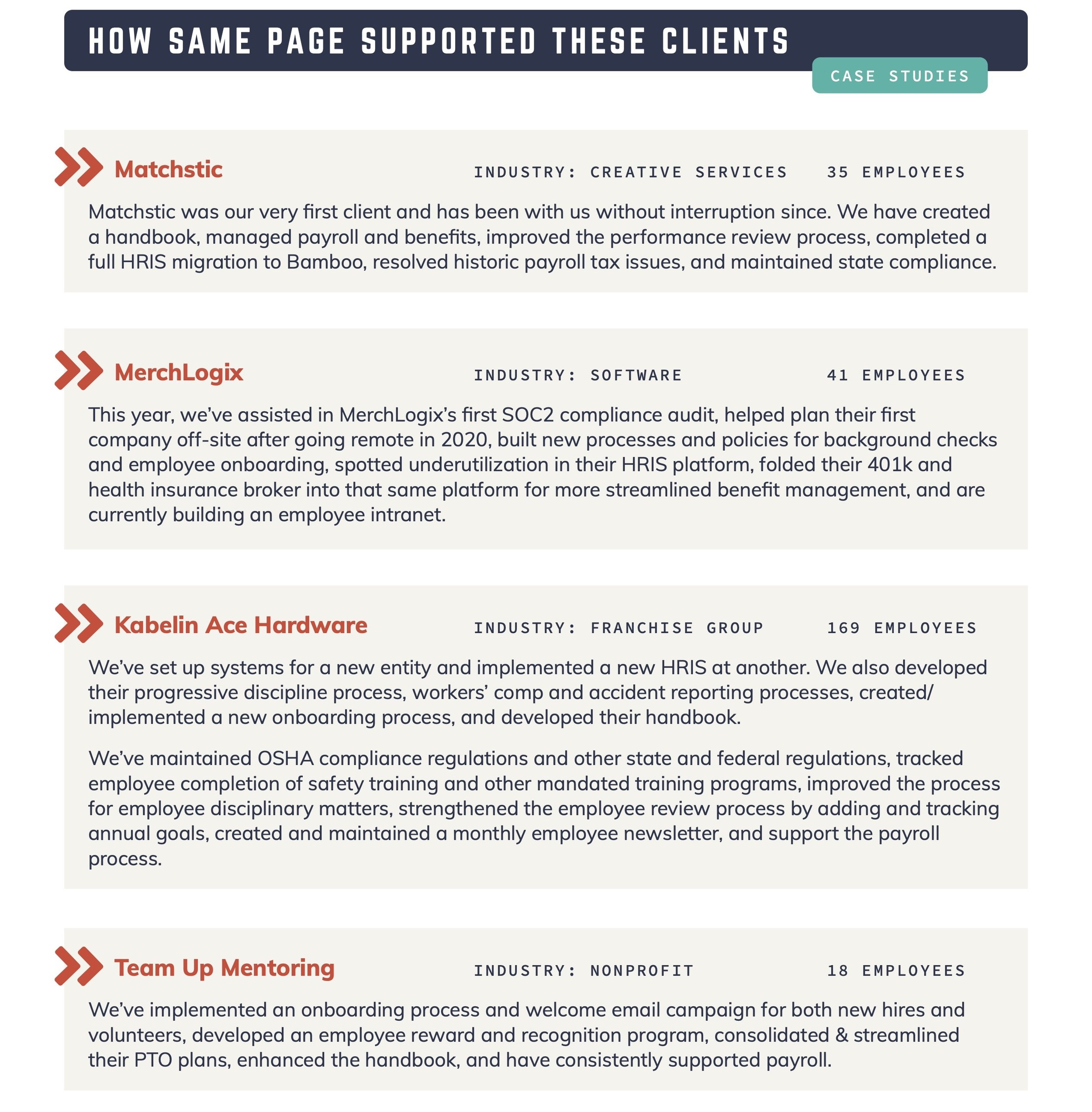 We asked a handful of clients and partners to share their thoughts on working with Same Page HR.
